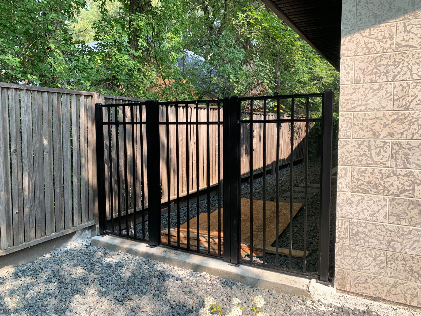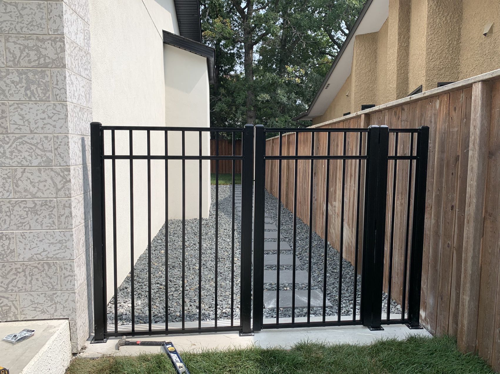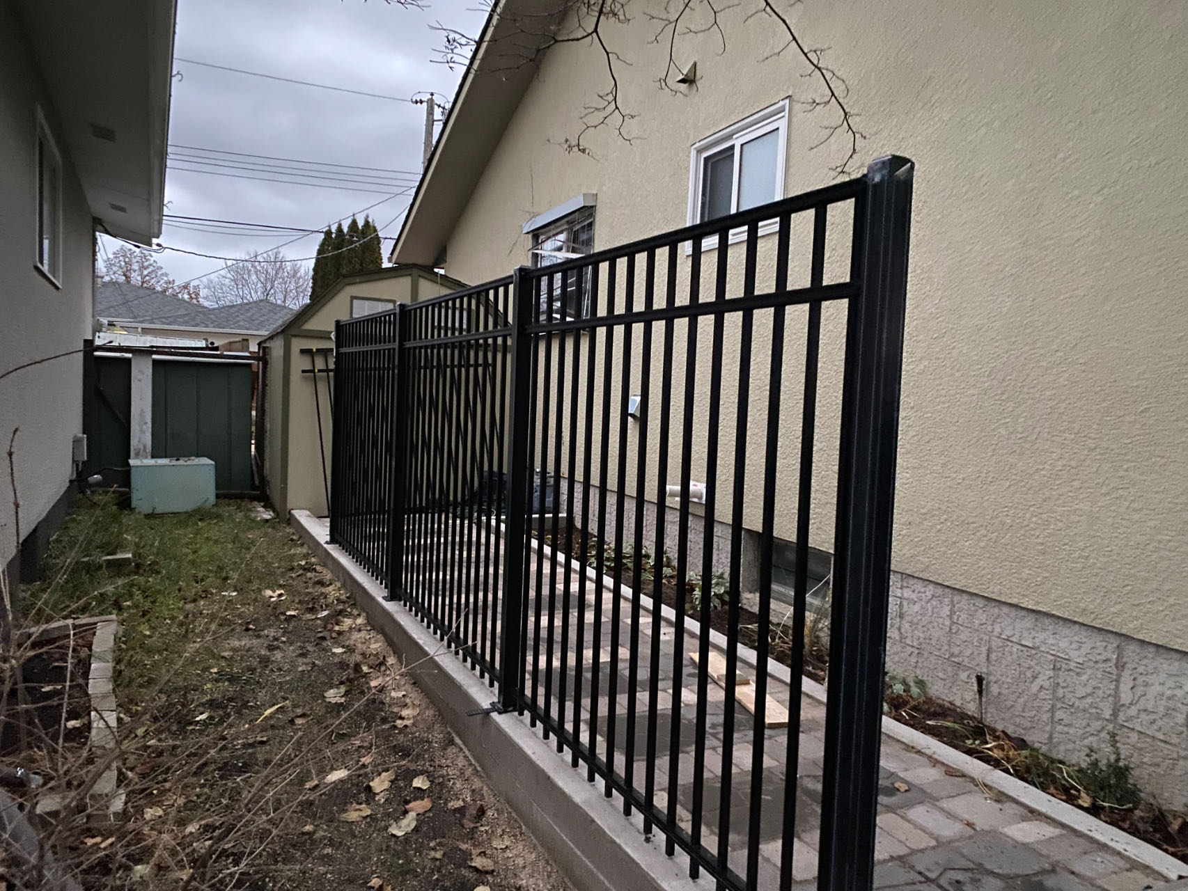 Aluminum Fence 60″ tall aluminum fence panel, can be cut shorter 92″ wide panel, can be cut shorter position of rails except top one can be custom powder coating finish, black color all fasteners included post size 2.36″ x 2.36″, height can be custom