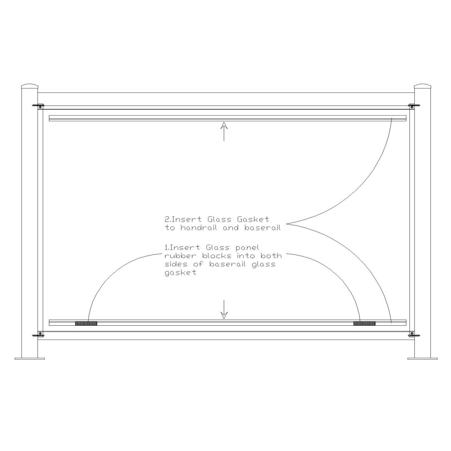Securely insert the glass gasket into the handrail. - Insert the Glass Panel