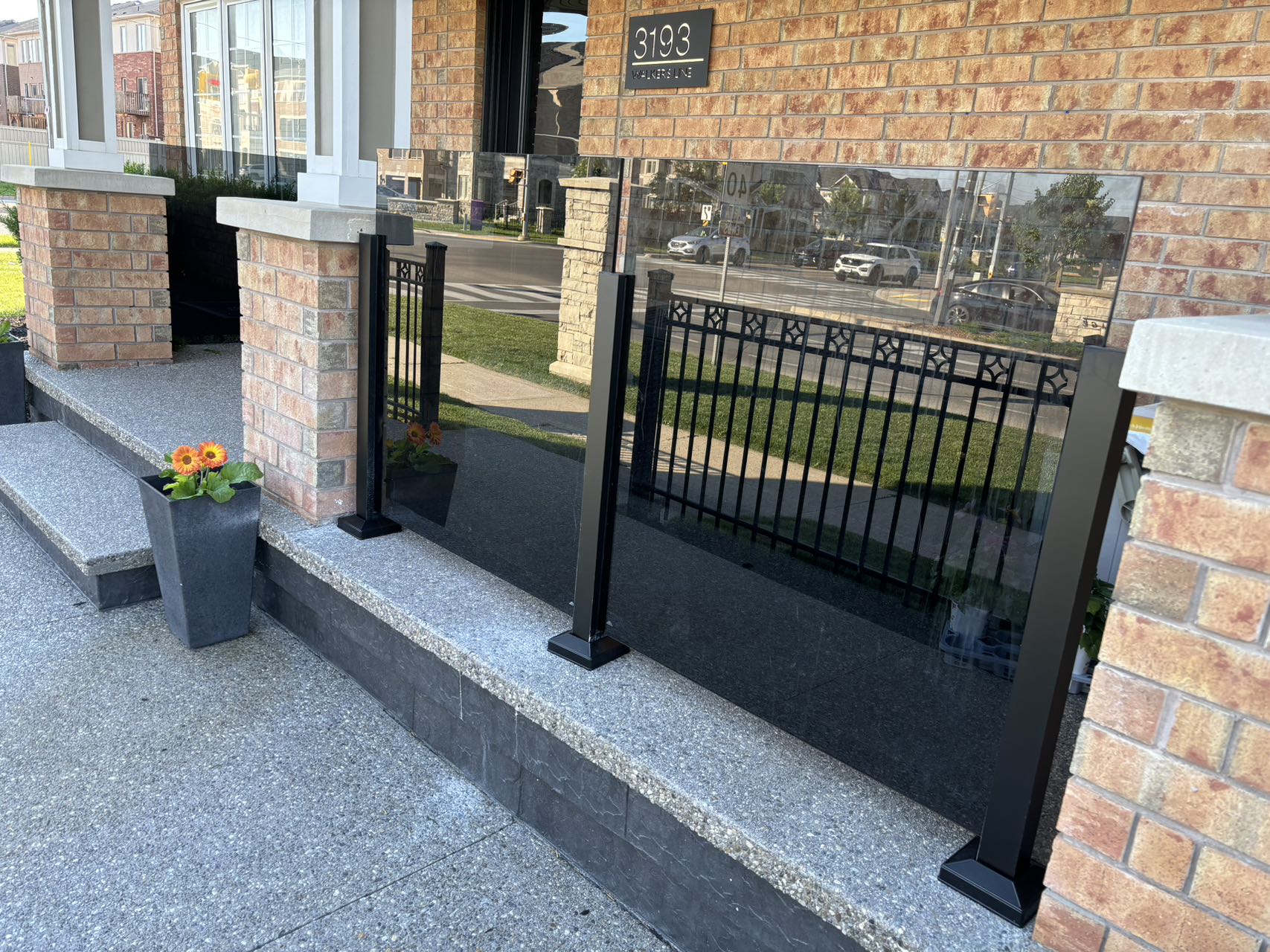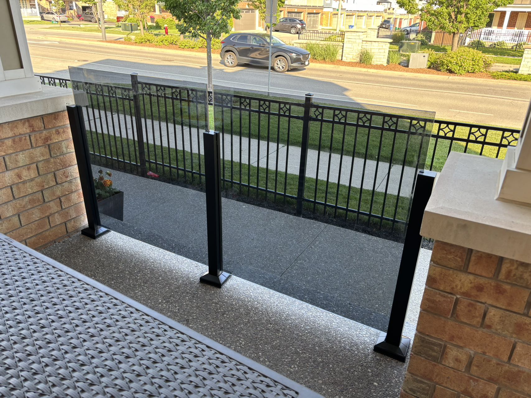 We offer two options: glass railings with aluminum frame and topless glass railings.