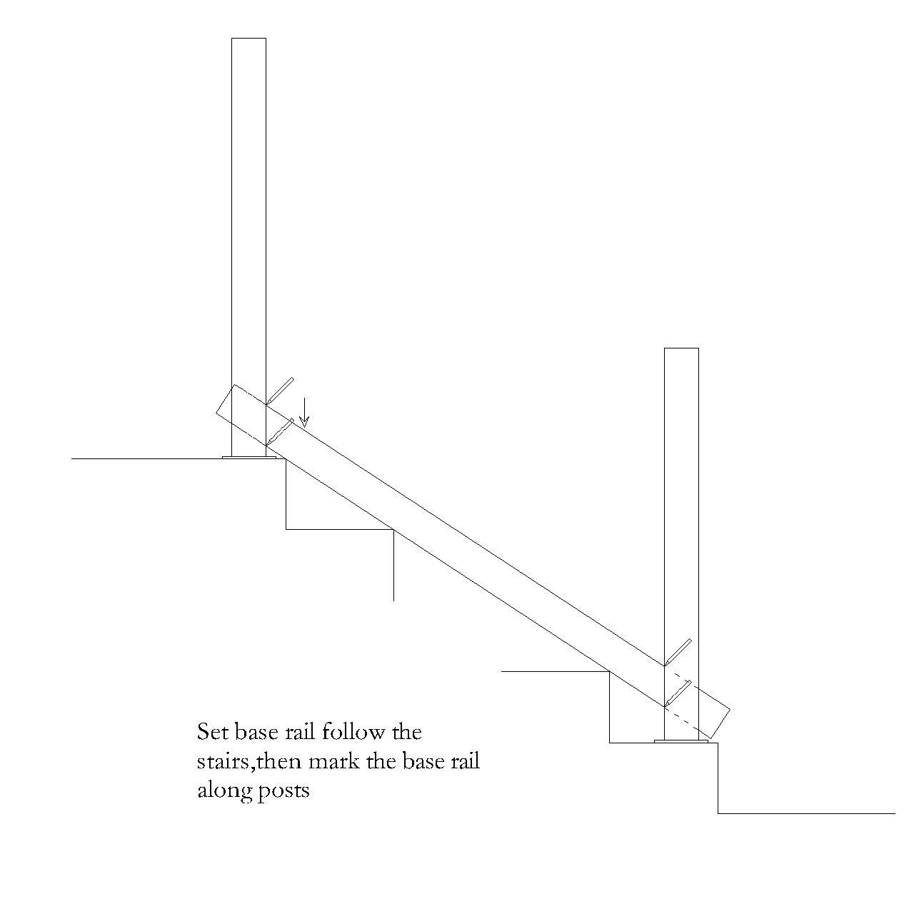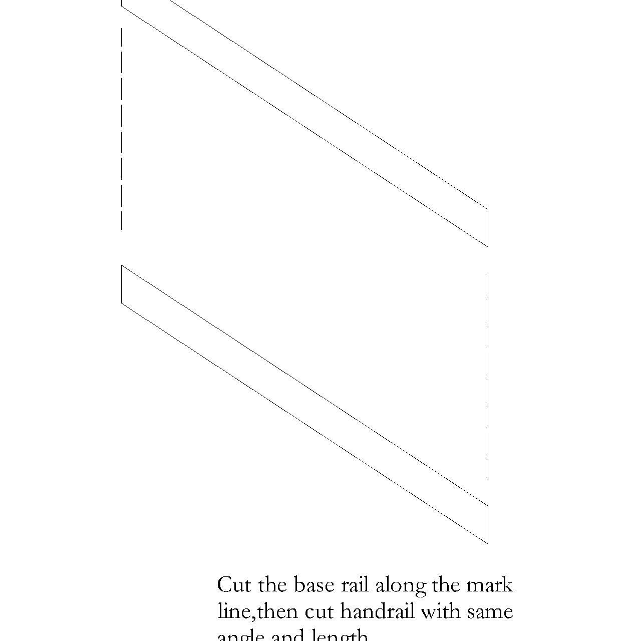 - Cut the base rail along the marked lines, then cut the handrail to match the same angles and length.